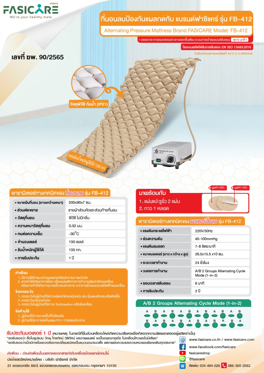 ฟาซิแคร์ที่นอนลมแบบรังผึ้งรุ่น FB-412 จำนวน 130 cells