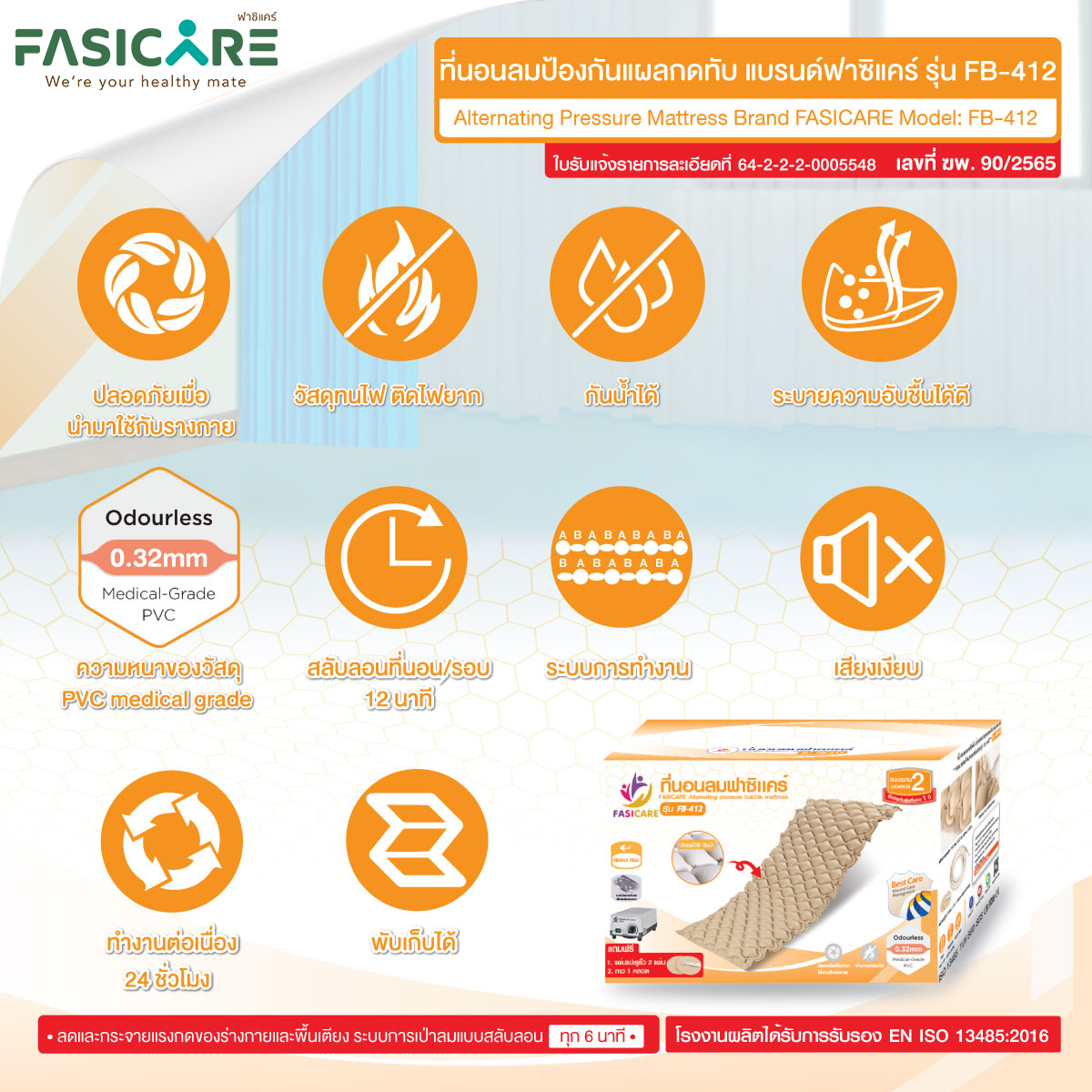 ที่นอนผ่าน มาตราฐาน ISO:13485 ,SGS,FDA