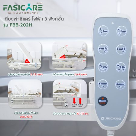 เตียงผู้ป่วยฟาซิแคร์ ระบบไฟฟ้า 3 ฟังก์ชั่น รุ่น FBB-202H มาพร้อมเเบตเตอรี่สำรอง