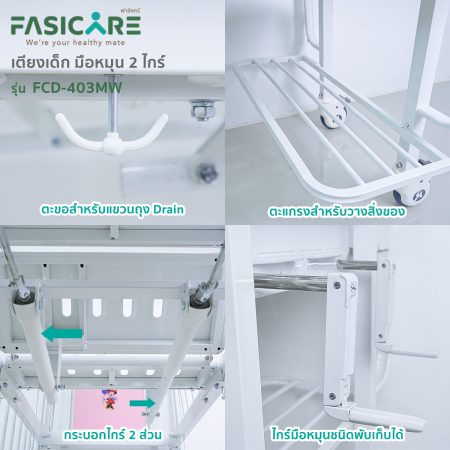 เตียงผู้ป่วยเด็ก ระบบมือหมุน 2 ไกร์ รุ่น FCD-403MW