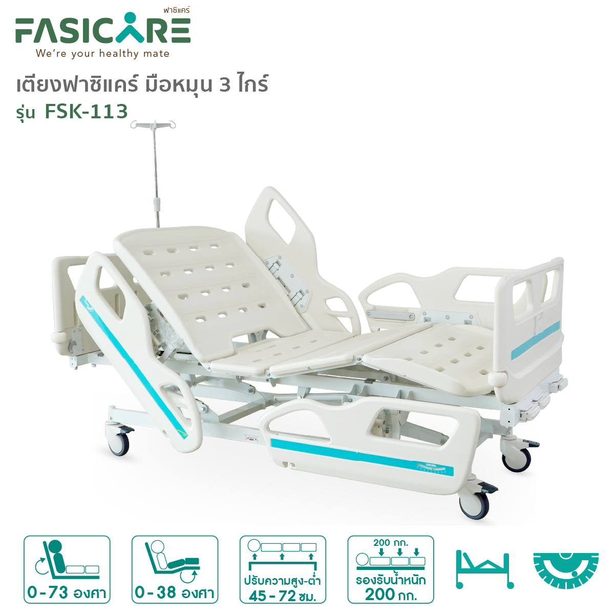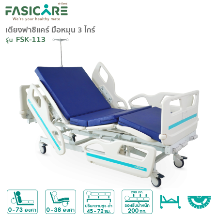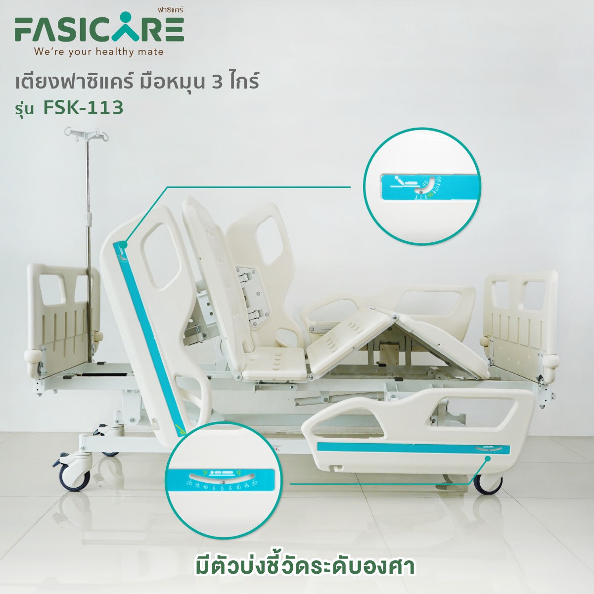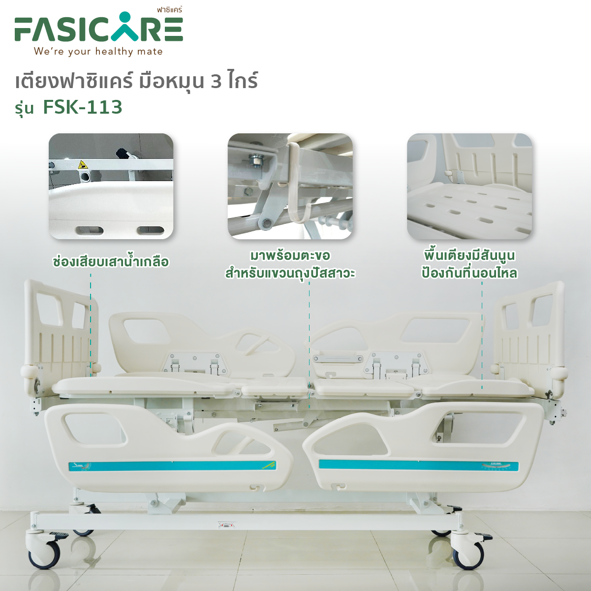 เตียงผู้ป่วยฟาซิแคร์ ระบบมือหมุน 3 ไกร์ รุ่น FSK-113