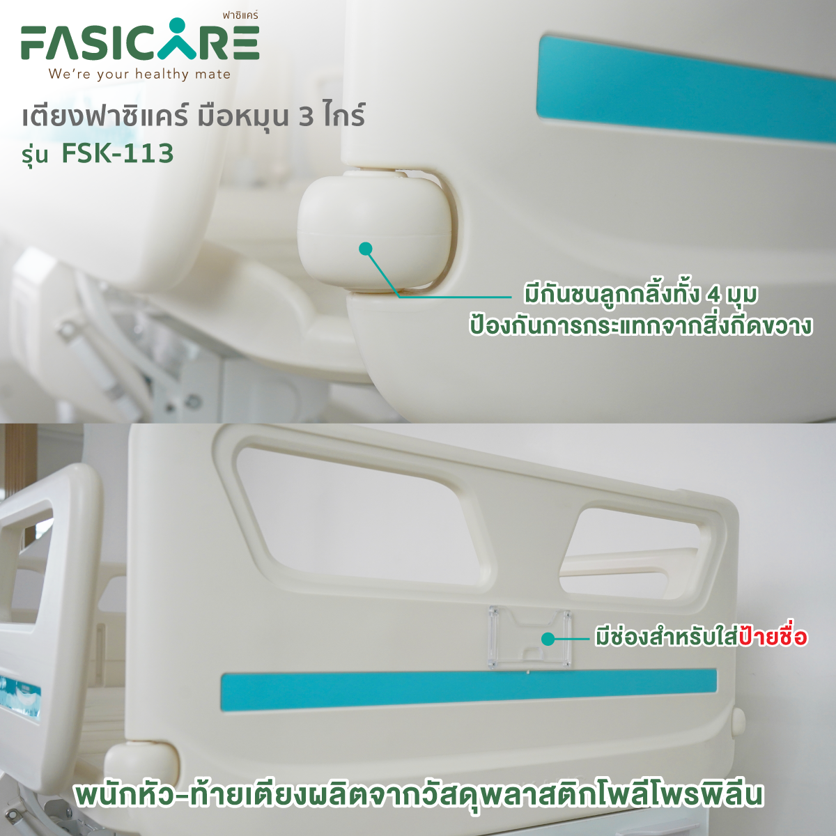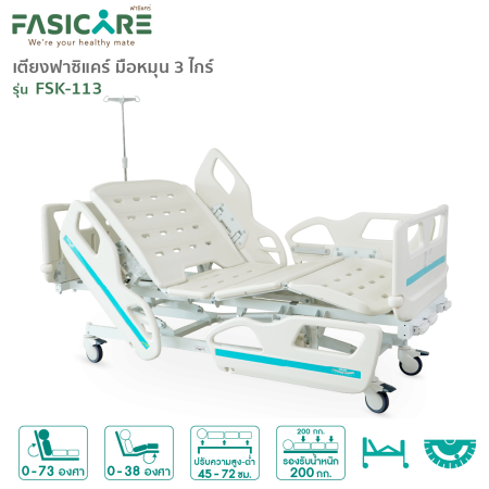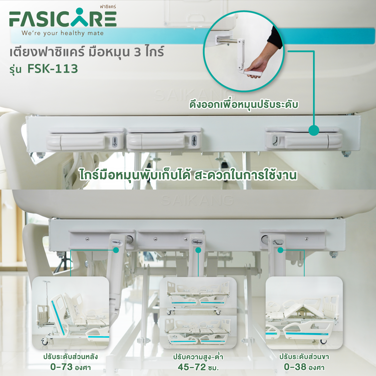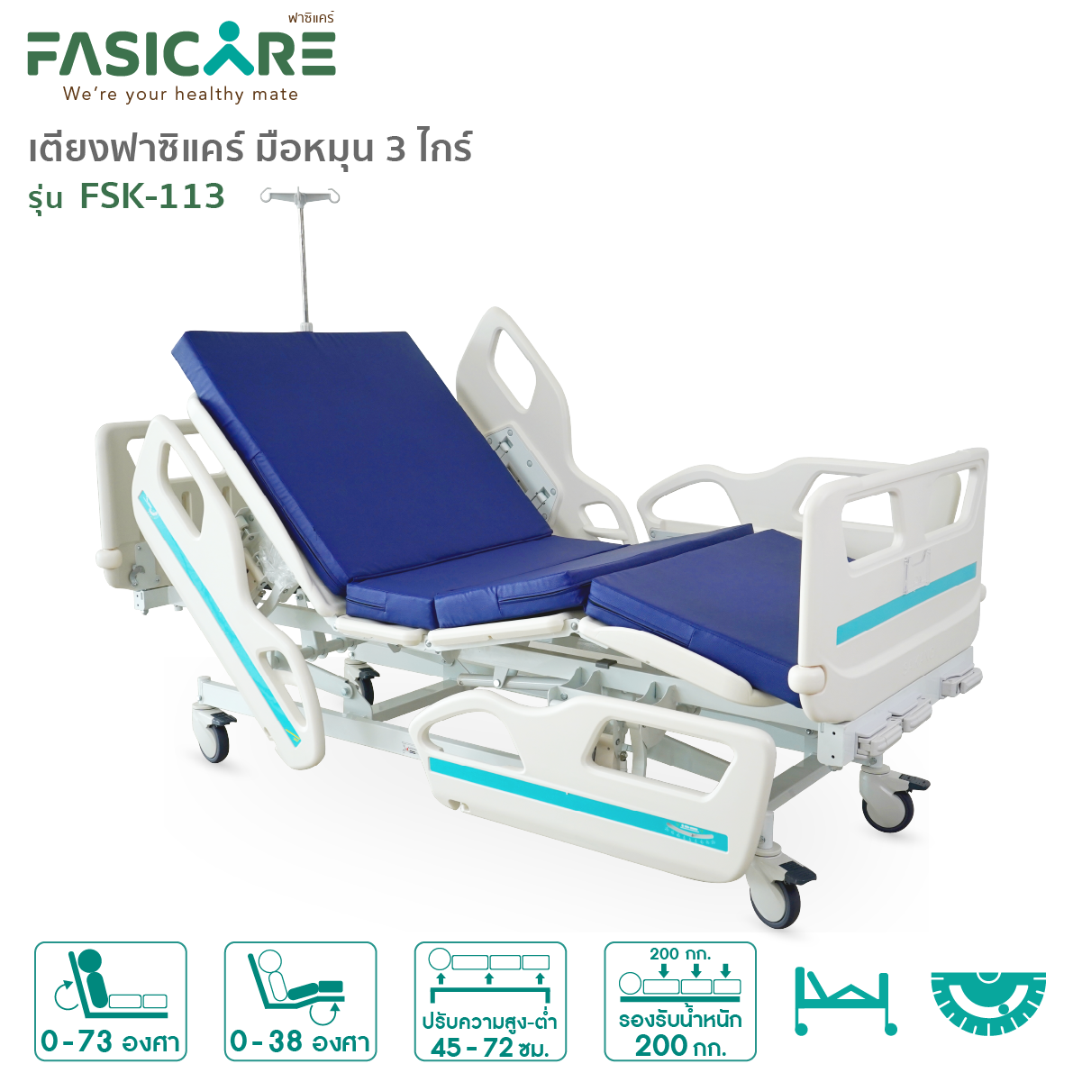 เตียงผู้ป่วยฟาซิแคร์ ระบบมือหมุน 3 ไกร์ รุ่น FSK-113