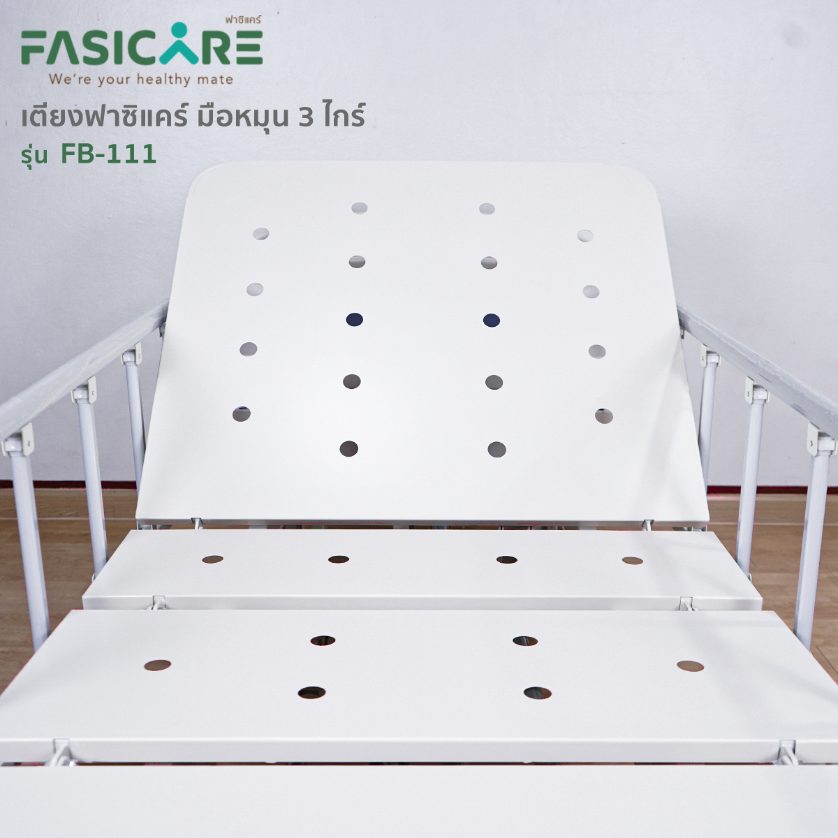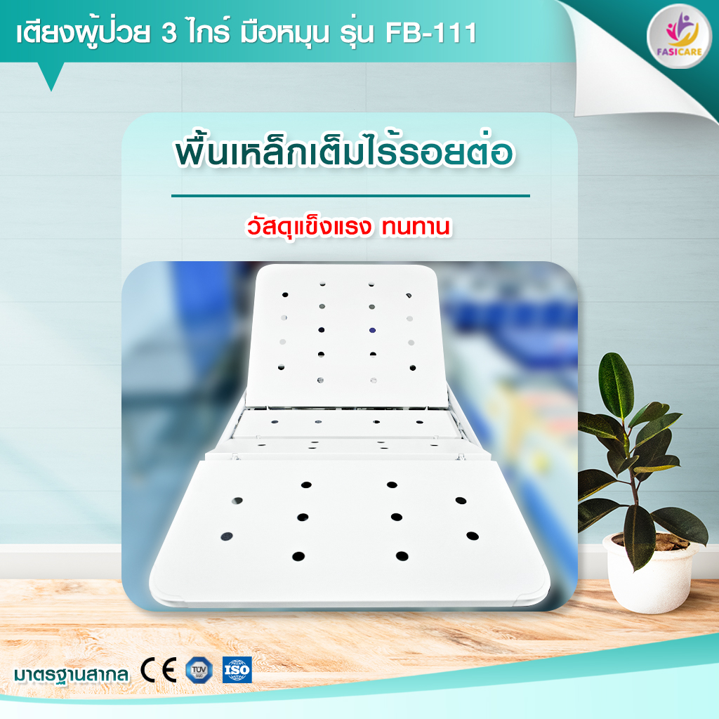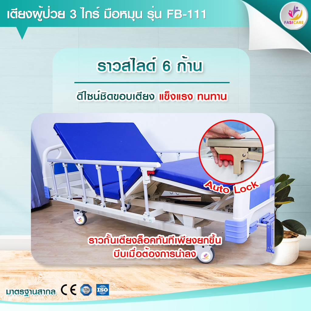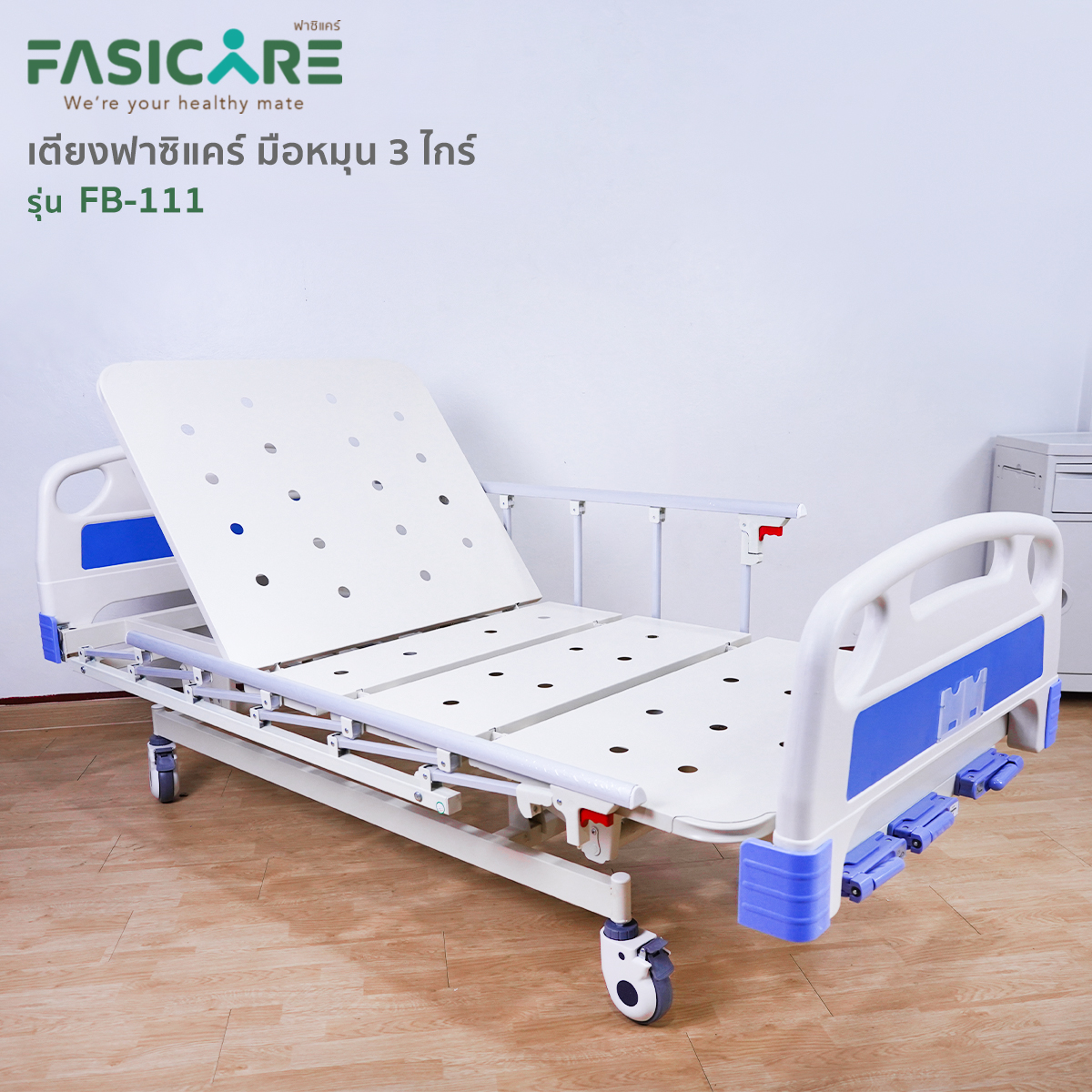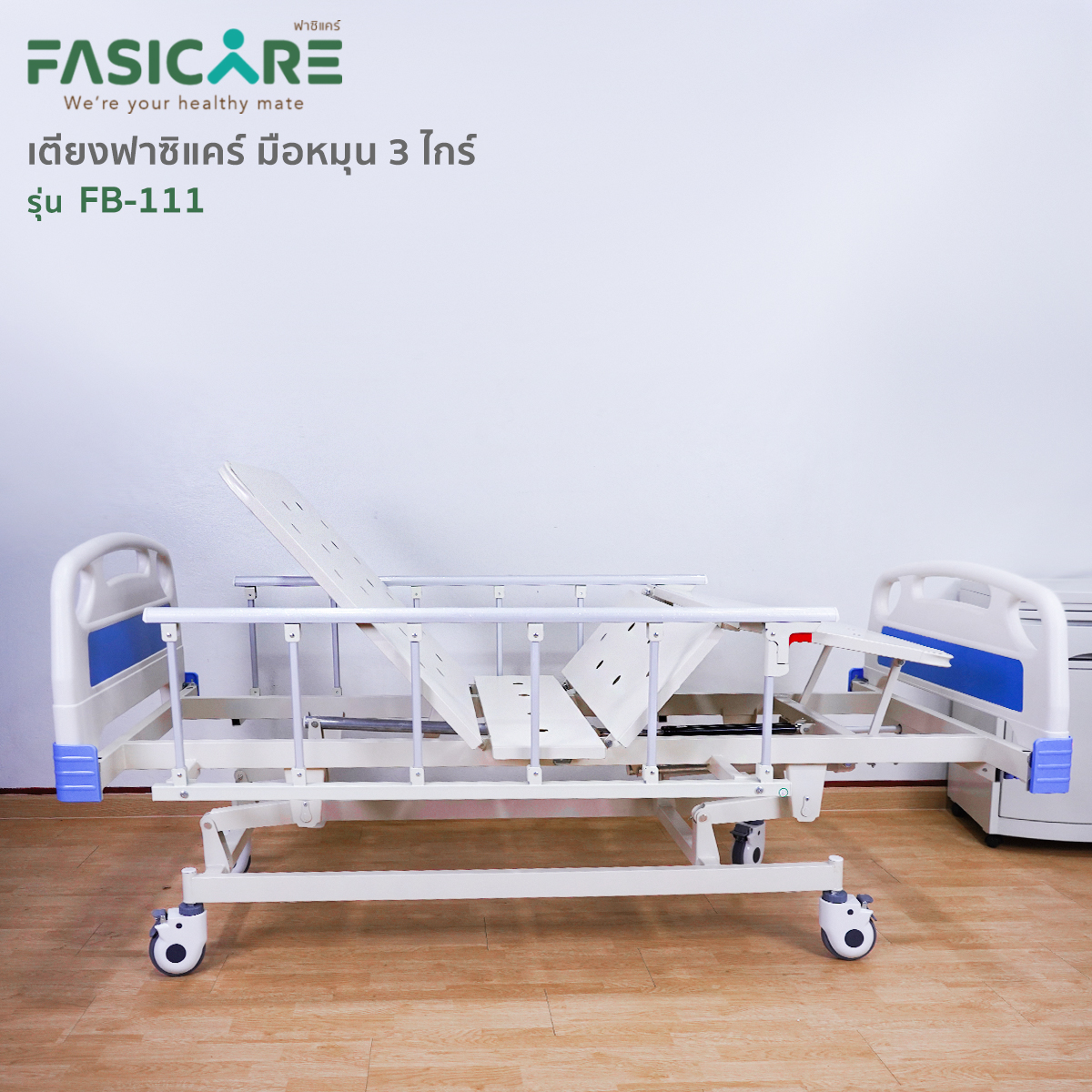 เตียงผู้ป่วยฟาซิแคร์ ระบบมือหมุน 3ไกร์ เกรดโรงพยาบาล (ราวสไลด์6ก้าน) รุ่นFB-111
