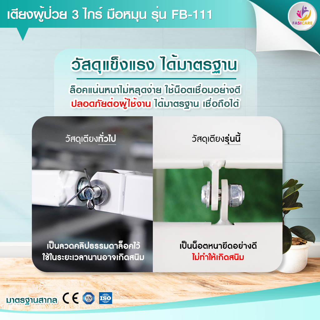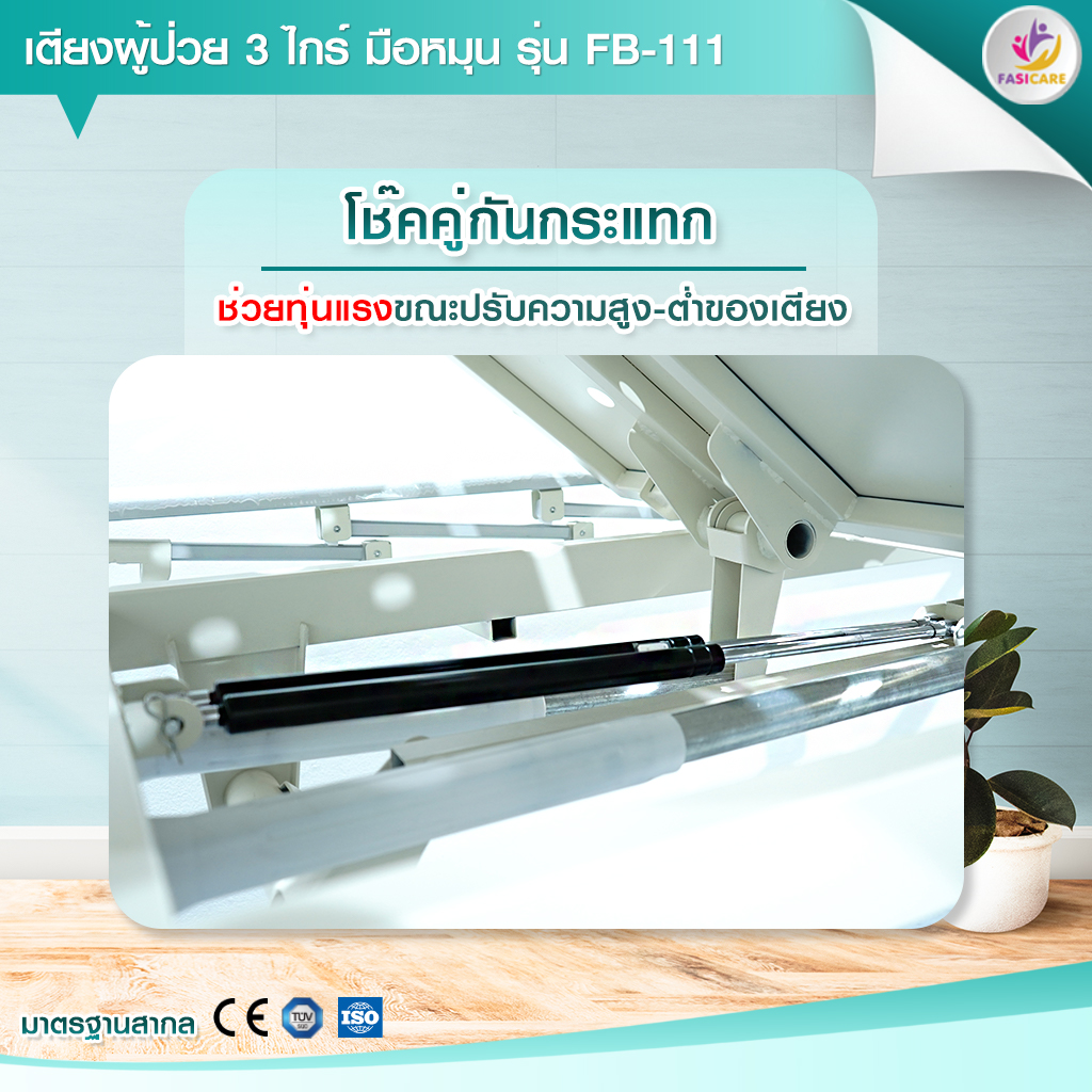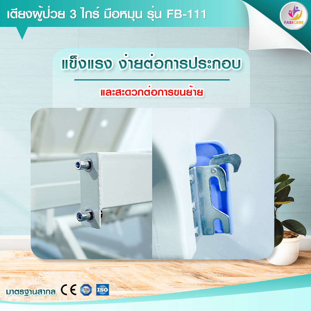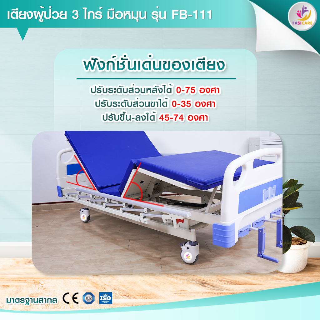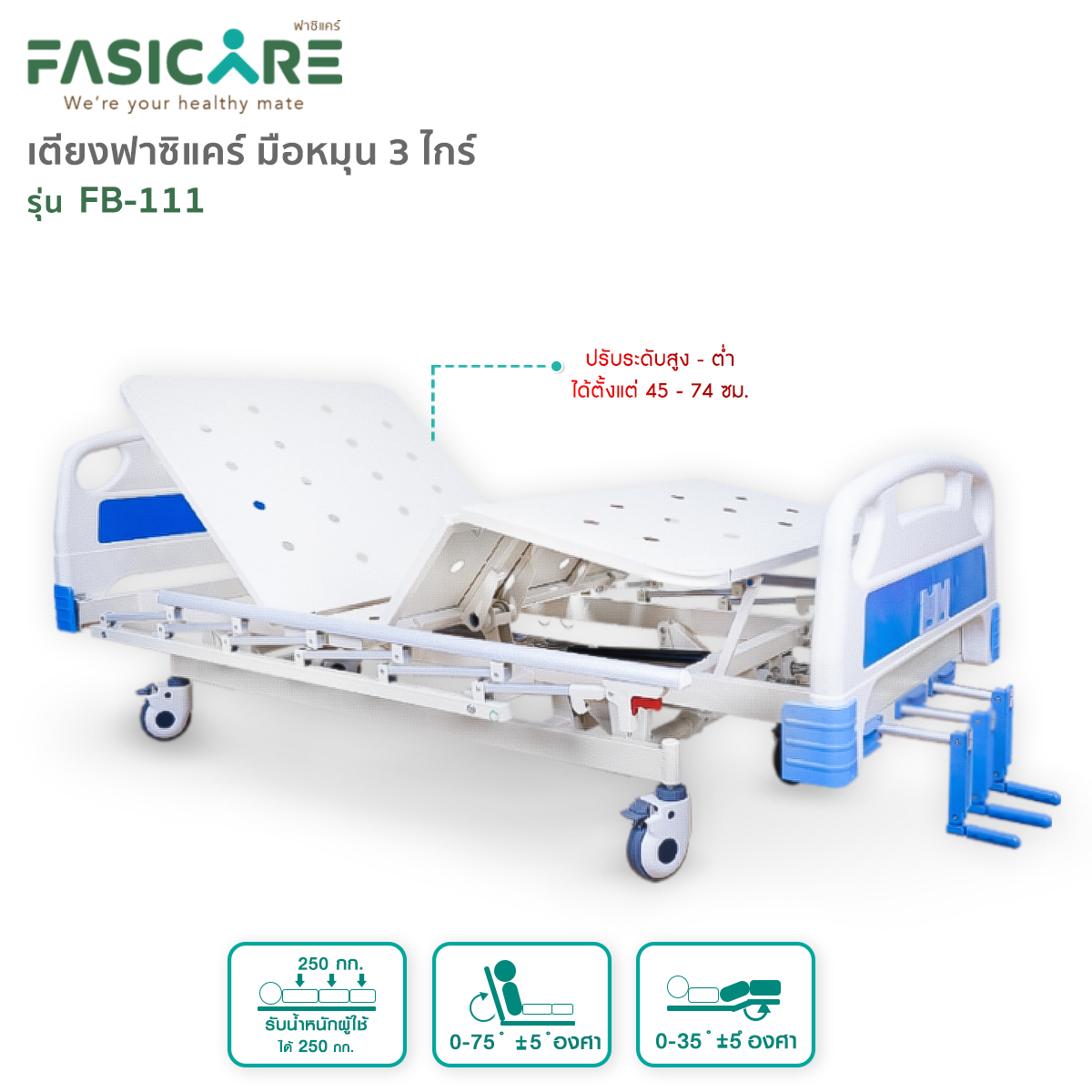 เตียงผู้ป่วยฟาซิแคร์ ระบบมือหมุน 3ไกร์ เกรดโรงพยาบาล (ราวสไลด์6ก้าน) รุ่นFB-111
