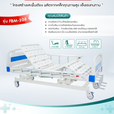 เตียงผู้ป่วยฟาซิแคร์ ระบบมือหมุน 3ไกร์ รุ่น FBM-308