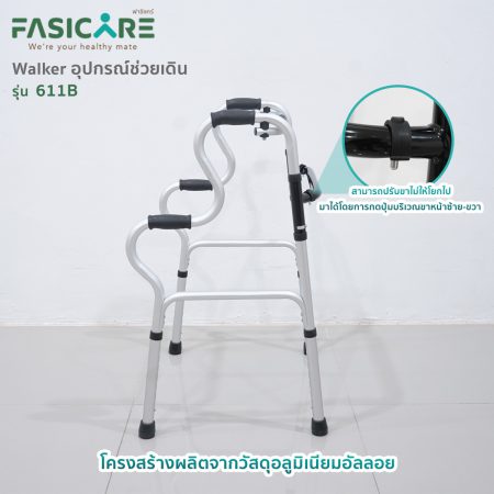 อุปกรณ์ช่วยเดินแบบ 4 ขา ที่ให้ความมั่นคงมากที่สุด ด้วยการออกแบบให้มีฐานรองรับน้ำหนักที่กว้าง น้ำหนักเบา พร้อม “ล้อ” บริเวณฐาน ช่วยให้ใช้ฝึกเดินได้ง่าย สะดวก จึงเหมาะกับผู้ป่วย ผู้สูงอายุ และผู้พิการ พร้อมด้ามจับกระชับมือ ปรับระดับความสูง-ต่ำได้ ตามความเหมาะสมของผู้ใช้งานได้อย่างลงตัว