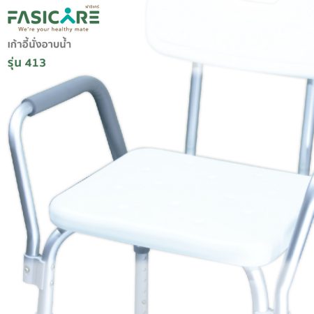 FASICARE เก้าอี้อาบน้ำ รุ่น 413 ปรับระดับได้ พร้อมพนักพิงหลัง และที่วางแขน