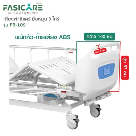 - เตียงผู้ป่วยมือหมุน 3 ไกร์ รหัส FB-109 1 หลัง
