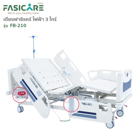 เตียงผู้ป่วยฟาซิแคร์ ระบบไฟฟ้า 3 ไกร์ รุ่น FB-210 มีระบบCPR ระบบล้อ Central Lock